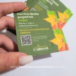 Personalizamos a arte e temos vários tipos de tamanhos de cartões. Conte com uma variedade de escolha de tipos de semente para seu papel ecológico, como: Margarida, Camomila, Rúcula, Cravo Francês, Pimenta, dentre outras.