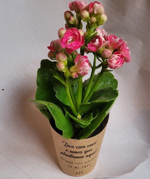 Mini kalanchoes decoradas é uma excelente lembrancinha de casamento, aniversário, maternidade e ocasiões especiais. Personalizamos os dizeres de acordo com o tema do seu evento.
