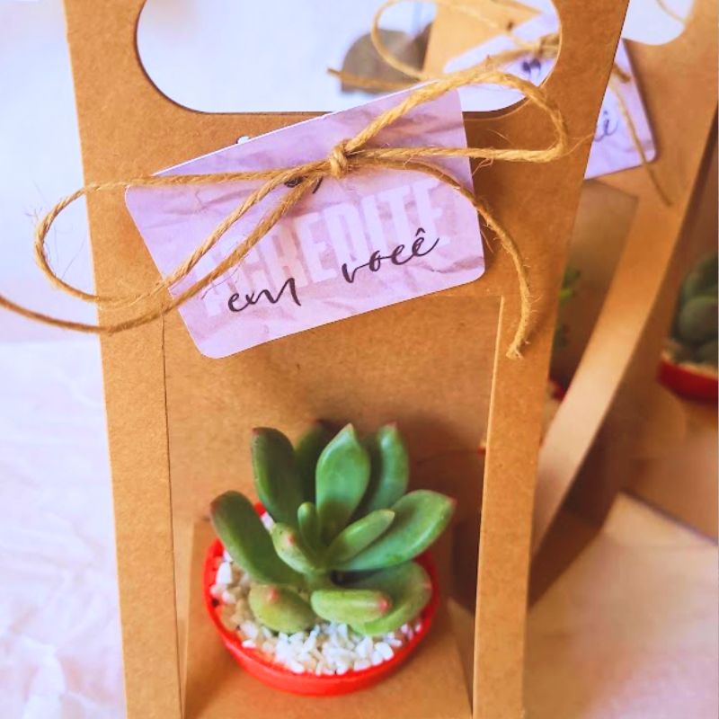 Lembrança sacola suculenta: personalizada e ecológica, perfeita para casamentos, aniversários e eventos especiais. Adicione um toque rústico e único à sua festa com estas lembrancinhas criativas, ecológicas e sustentáveis