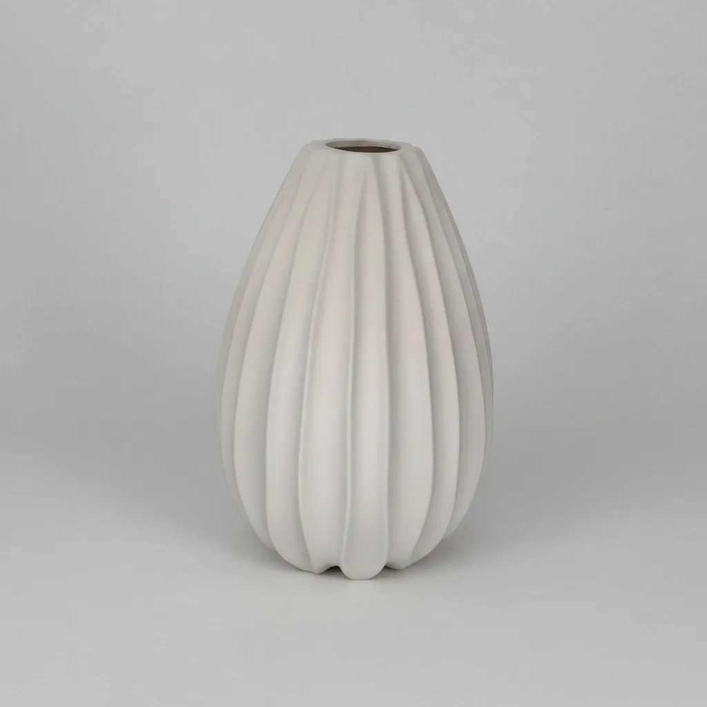 Vaso em cerâmica com acabamento branco fosco, design moderno, ideal para decoração de ambientes contemporâneos.
