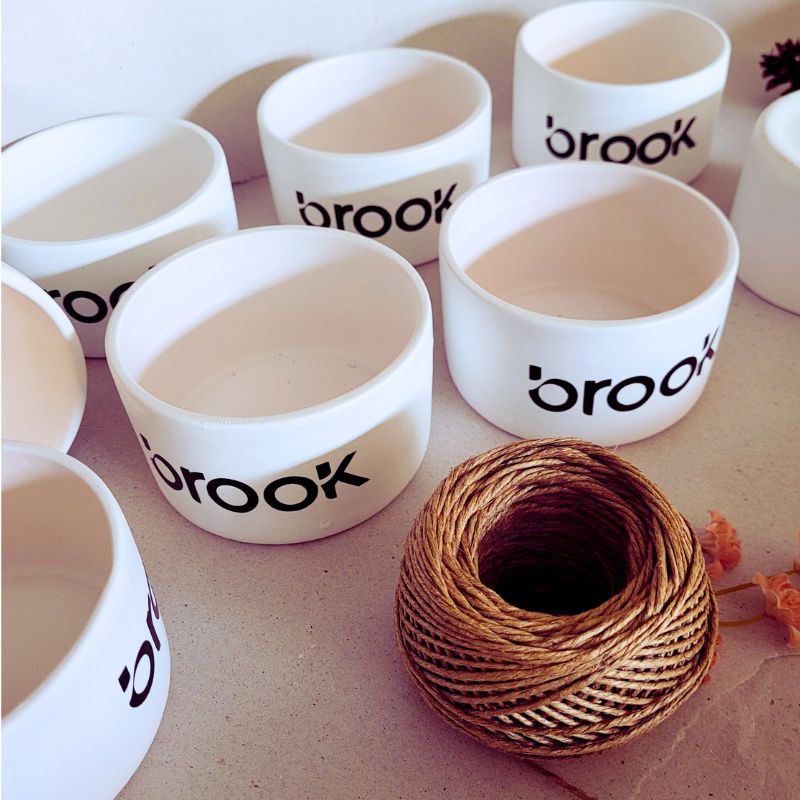 Vaso para Lembranças e Presentes personalizado com escrita, desenho ou logo diretamente na cerâmica em adesivo vinil de cor única e resistente à prova d água. Cerâmica com acabamento sofisticado de pintura de tinta spray branca.